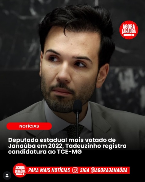 O deputado estadual mais votado de Janaúba nas eleições de 2022, Tadeu Leite, registrou nesta segunda-feira (23) sua candidatura ao cargo de conselheiro do Tribunal de Contas do Estado de Minas Gerais. Atualmente, ele também ocupa a presidência da Assembleia Legislativa de Minas Gerais.