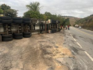 Acidente: caminhão tomba na BR 418 próximo a Pedro Versiani