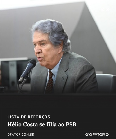 O ex-senador e ex-ministro Hélio Costa filiou-se ao PSB na manhã desta quinta-feira (2). O ex-chefe do ministério das Comunicações do presidente Luiz Inácio Lula da Silva (PT) chegou à sede do partido acompanhado de seu filho, Gabriel Costa, que também ingressou na legenda. Gabriel avalia disputar uma cadeira na Assembleia Legislativa de Minas Gerais (ALMG).